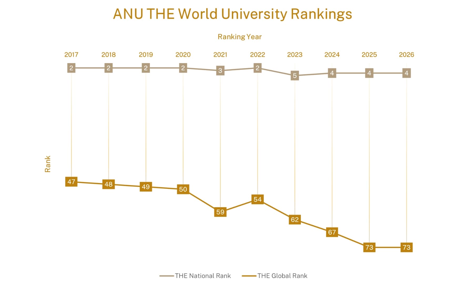 The Australian National University (ANU) has retained its 73rd position on the Times Higher Education (THE) World University Rankings, remaining in fourth place nationally.