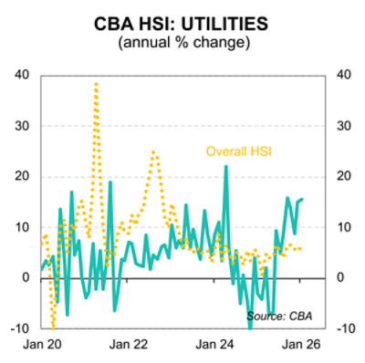 While Australians splashed out on summer fun, a large chunk of growth in their spending was driven by utilities, which recorded the largest monthly increase across categories, lifting 3.7 per cent in January, following another strong lift in December.