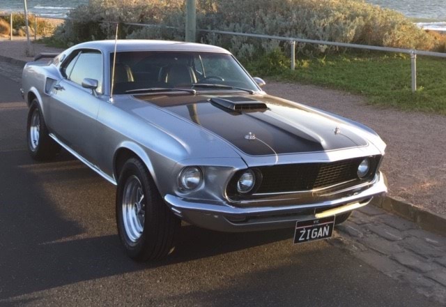 The vehicle, a silver 1969 Mustang Mach 1, had personalised number plates ZIGAN.