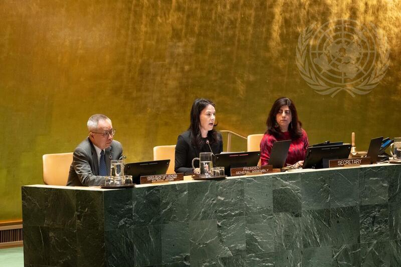 Annalena Baerbock (center), President of the United Nations General Assembly, chairs launch of “International Day against Unilateral Coercive Measures.” Credit: UN Photo/Evan Schneider