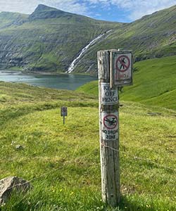 "In 2023, there were longstanding problems with tourists trampling the grass that sheep need to eat, so locals in Saksun put up sharply worded English signs to regulate tourist behaviour or, at times, to discourage visitors altogether. At the same time, I found signs that guided tourists toward the village's commercial offerings," says Hanna Birkelund Nilsson and adds: