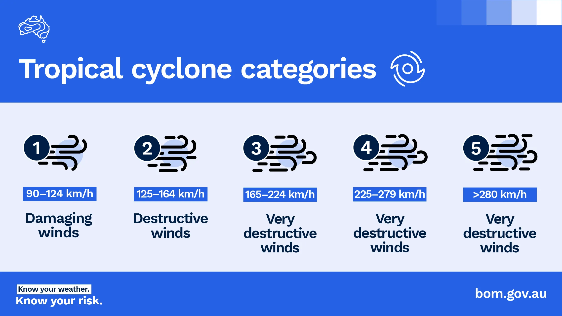 You can see any active tropical cyclone watches or warnings on our Warnings and alerts page or through the BOM Weather app.