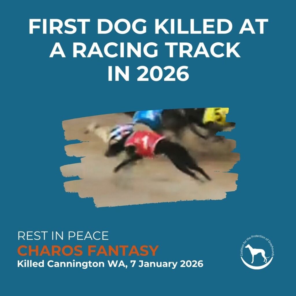 But racing injuries don't magically stop causing harm once the dog leaves the track. Many greyhounds suffer catastrophic and major injuries during training, trials, or the race itself – injuries that lead to euthanasia or death later, quietly, out of sight. Those deaths rarely make it into the official tally.