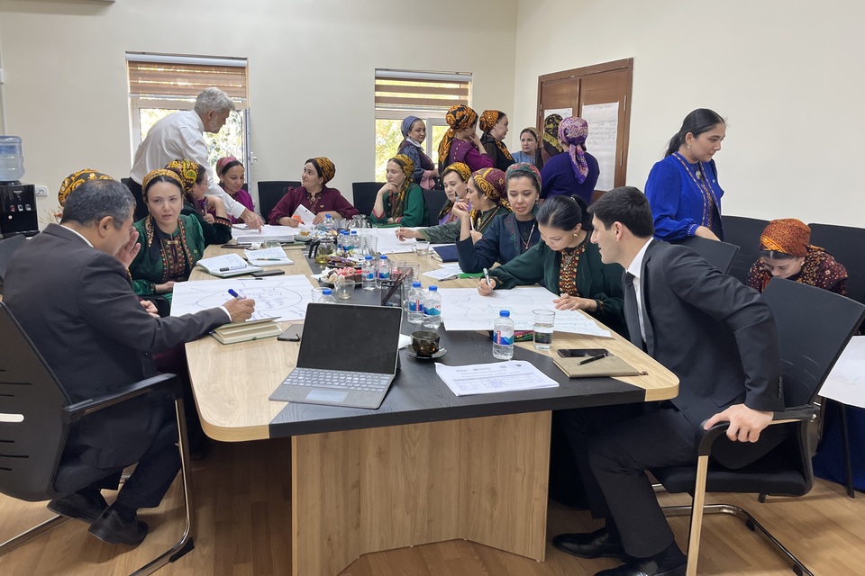 Dr Sarah Khan from Nottingham Trent University with teacher trainers in Ashgabat.