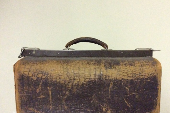City of Port Melbourne health inspector's brown leather Gladstone bag, pm0863, Port Phillip City Collection.