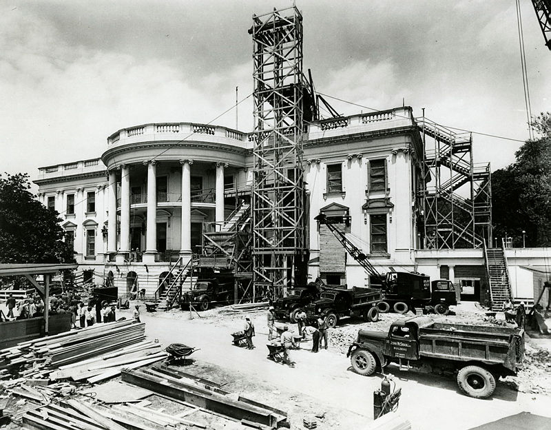 - In 1948, President Harry Truman undertook a "total reconstruction" of the White House's interior, expanding its foundation and footprint - preserving only its exterior walls.