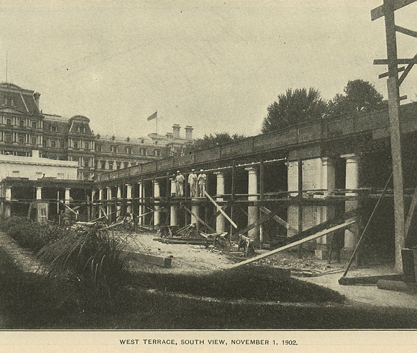 - In 1902, President Theodore Roosevelt built the West Wing - replacing expansive greenhouses constructed during the Jefferson Administration and establishing the modern day executive office wing with a "classically leaning design" - along with a colonial garden and East Terrace, which eventually became the East Wing.