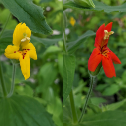 Two species of red Mimulus (monkeyflowers) normally pollinated by hummingbirds (Mimulus cardinalis and Mimulus verbenaceus) have unusual, yellow-flowered populations at the edge of their ranges.