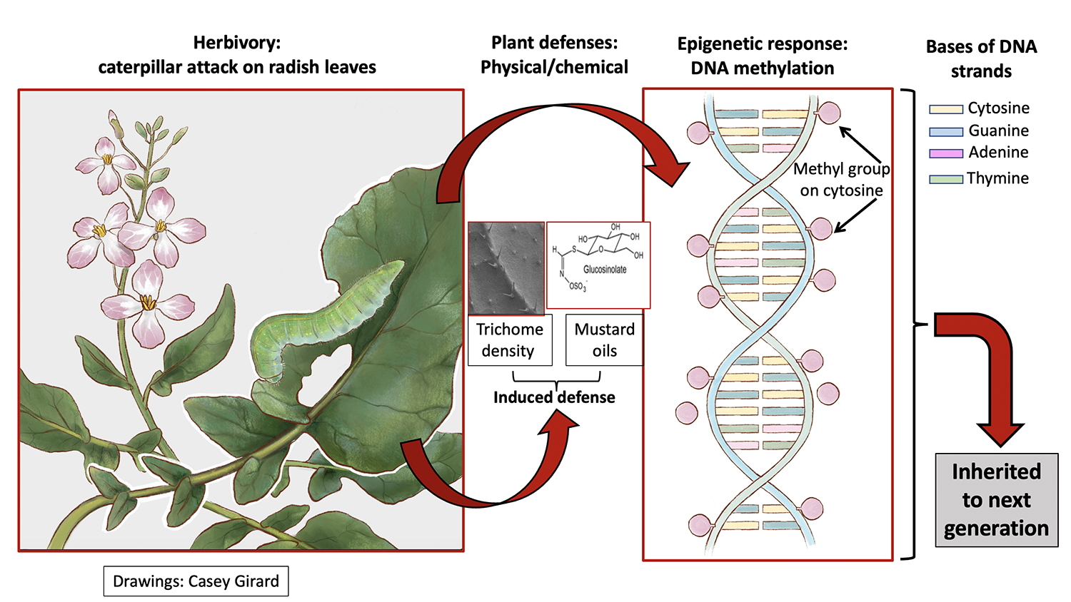 The study confirmed that DNA methylation is a chemical call to arms in wild radish plants and that attacks by hungry caterpillars trigger DNA methylation in parent plants and in their offspring.