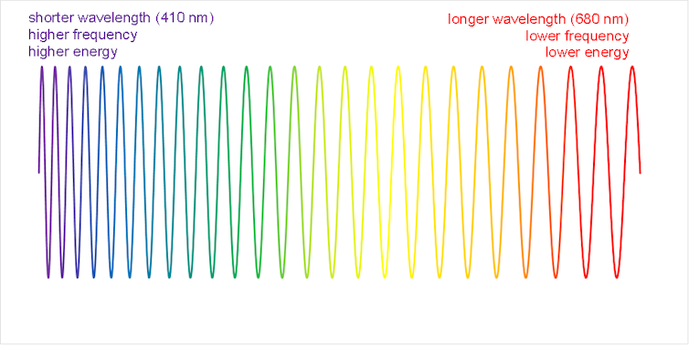 All visible light is actually energy that travels in waves ; the length of those waves determines the colour that our eyes see.